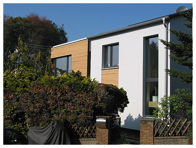Durch diese Sanierung des 60er-Jahre Wohnhauses zum Passivhaus im Bestand wird das Gebäude nicht nur energiesparend, sondern erhält eine moderne Gebäudehülle, die mit einer Neuorganisation der Grundrisse einhergeht. Großzügige Wohnräume sind der 4-köpfigen Familie wichtig, so wurde aus einem ehemals Zweifamilienhaus ein Einfamilienhaus mit Erweiterung. Der alte Balkon wird in die Gebäudehülle integriert und zukünftig als großzügige Galerie im Wohnraum genutzt.